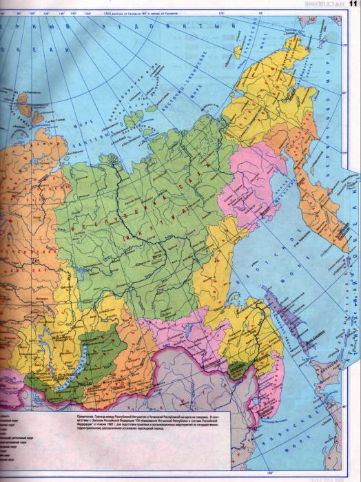 Карта России. Федеративное устройство РФ, карта масштаба 1см:150км