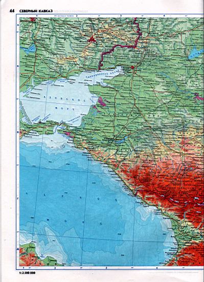 Карта России. Физическая карта Северного Кавказа масштаба 1см 25км